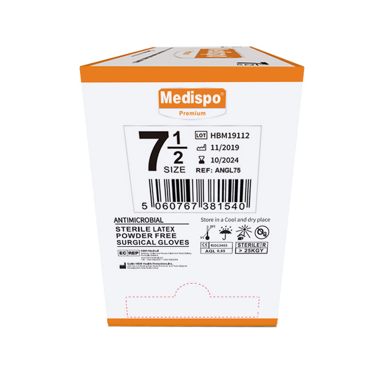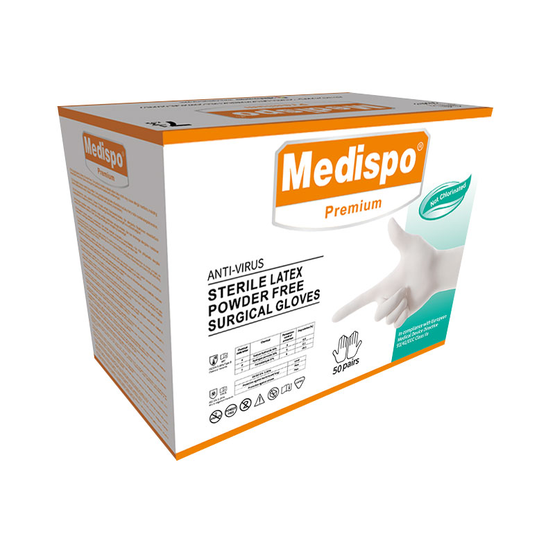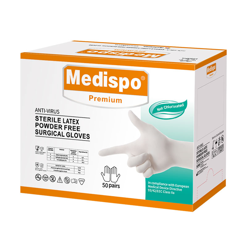 Consistent calibrated grip:The outer surface of Medispo surgical gloves are specially treated to provide a consistent grip. The grip is monitored and controlled during production and each lot must pass stringent internal grip controls before being released.